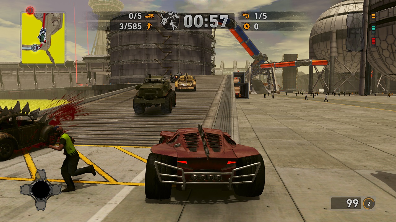 Вам придется управлять машиной, наполненной оружием, во время сражения или гонки, вам придется убивать людей, которые наполняют практически все игровые локации и карты. Попутно нужно уничтожать, ломать и крушить соперников, честность тут не в почете.