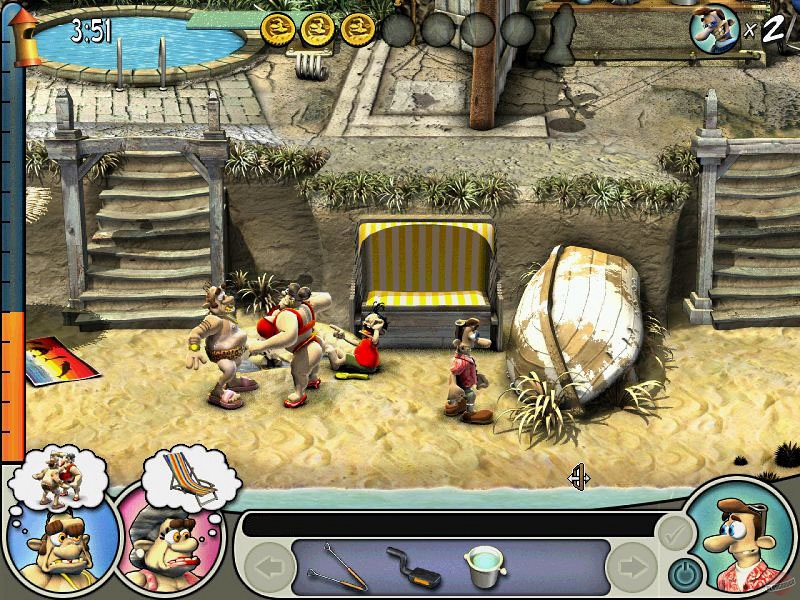 Любой уровень начинается с того, что мы заходим под аплодисмены невидимой аудитории в дом соседа. Дальше нужно внимательно изучить маршрут мистера Ротвейлера по дому. Все его действия последовательны и зациклены, то есть он всегда будет ходить по кругу и делать одно и то же в неизменном порядке. Нашей задачей будет подстраивать ему ловушки в каждом месте, где он что-то делает. Например, заменить зубную пасту на обувной крем или нажать кнопку слива на унитазе, когда сосед принимает душ, чтобы его окатило кипятком. Все зависит от ситуаций, которых в игре великое множество.