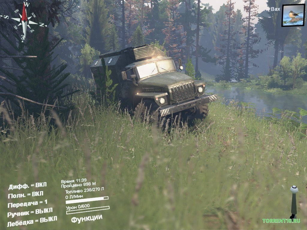 Считаем необходимым, упомянуть также и о том, что в игре SpinTires, разработчиками был сделан упор на максимальную симуляцию поведения автомобиля на определенного рода дорожной поверхности. Это говорит о том, что ваш автомобилей, вернее та скорость, которую он будет развивать, будет напрямую зависеть от типа дорожного покрытия, на поверхности которого, он собственно и будет находится. Кроме этого, была реализована уникальная модель повреждений, благодаря которой тот ущерб, который получит ваша машина, в результате очередного столкновения в игре, будет максимально идентичны с теми повреждениями, которые ваш автомобиль, получил бы в случае реального столкновения.