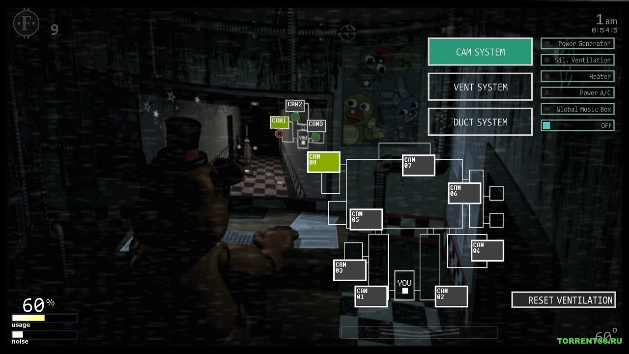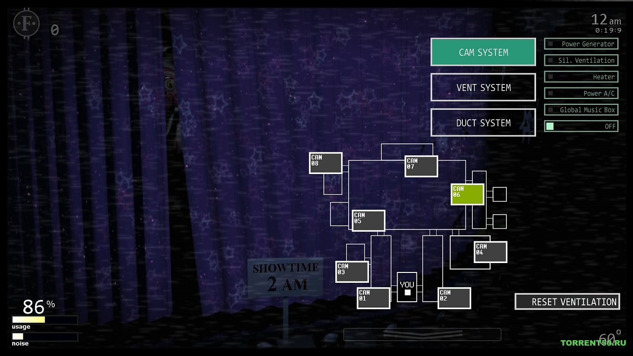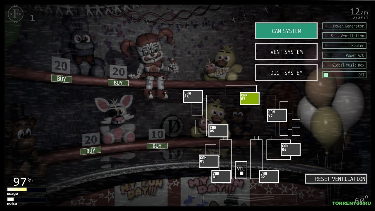 В FNAF 7 Ultimate Custom Night вы останетесь в офисе и постараетесь остановить вход аниматроника. Есть несколько мест, которые прямо ведут в ваш офис, например, две боковые двери, два воздушных шланга и два вентиляционных отверстия. Это места, куда прибудет аниматроника, поэтому вы должны часто проверять их, а также постоянно держать их в надежной защите. Вам нужно следить за этими врагами и следить за тем, чтобы они не могли войти в вашу комнату, иначе вы будете напуганы. Для вас доступно 16 испытаний. Постарайтесь эффективно использовать некоторые инструменты, представленные в игре, такие как генератор энергии, глобальная музыкальная шкатулка, обогреватель, кондиционер и т. Д., Чтобы преодолеть все эти проблемы. Если вы хотите поиграть в эту игру, то тогда FNAF 7 скачать торрент абсолютно бесплатно.