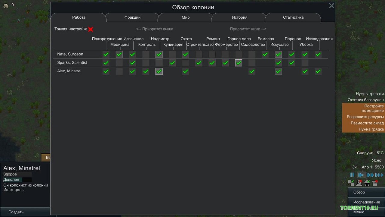 Игровой проект, который имеет название RimWorld Royalty, является лучшим в своем жанре, поскольку данная экономическая стратегия смогла стать популярной в краткие сроки. Тут основной герой будет в роли колониста, и отправиться вместе с иными персонажами, обустраивать игровую территорию. Помимо того, нужно искать ресурсы, захватывать территории противников, а также взять в плен врага. В игре есть необычные, а главное интересные задания. Игрокам придется нападать на космических пиратов, которые начинают первые, поэтому стоит позаботиться о свое защите. После того как корабль основного героя потерпел кораблекрушение то нужно найти выход с непростой ситуации. Именно теперь придется выживать и искать для себя сначала ресурсы, а после укрытие. Чтобы начать играть, достаточно RimWorld Royalty скачать торрент на русском. Далее стоит расширять свою колонию и чем больше колонистов присоединятся, тем проще будет победить врагов. Согласно мере прохождения уровней можно будет получить важные артефакты и очки. Придется сражаться с иными героями и чтобы максимально укрепить территорию нужно потратить много времени. Все персонажи по-своему уникальные, а также разнообразные личности.