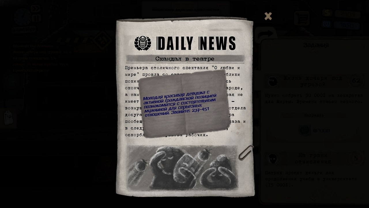 Ни одно решение не дается легко: если вам дана власть, чтобы уничтожить частную жизнь другого человека, вы должны? Или вы должны относиться к тем, на кого вы шпионите, так, как они заслуживают? С другой стороны, кто решает, что кто-то заслуживает? Что, если два человека заслуживают спасения, но один должен уйти? Кого же вы выберете? Есть ли такая вещь, как меньшее зло? Чтобы решить данные вопросы, мы предлагаем вам Beholder 1 скачать торрент на нашем сайте абсолютно бесплатно. Вы не знаете, где вы окажетесь: "Beholder" - это игра с несколькими концовками. Хотя вы всегда будете иметь достаточно информации, чтобы принять мудрое решение, всегда будет что-то о вас, что вы, возможно, не знаете. "Созерцатель" - это не красиво откалиброванная виртуальная реальность! Это и есть жизнь! И это действительно так!