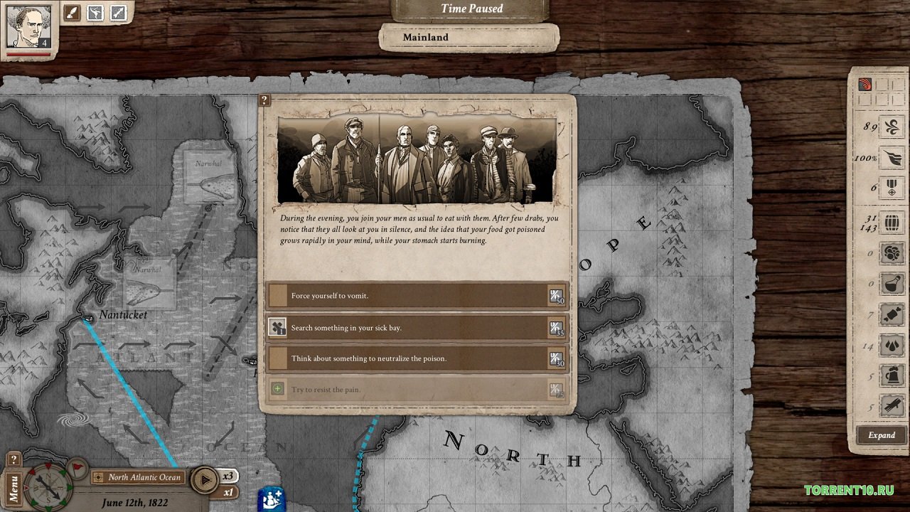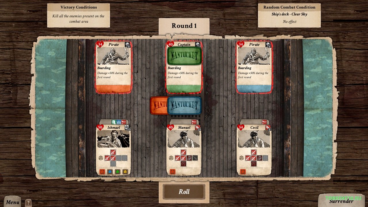 - Откройте как можно больше мест для охоты, преследуя китов из-за их ценного жира, но при этом не забывайте защищать свой корабль от пиратов при помощи специальной системы боя по очереди.