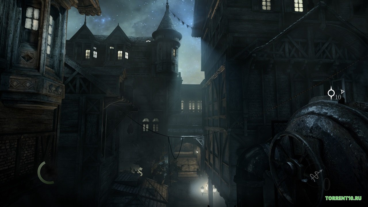 Наверняка каждый из вас осознает, что для того, чтобы быть максимально незаметным, нужно будет использовать соответствующее оружие, так вот, в игре Thief, таковым оружием, выступит лук, который ко всему прочему, может похвастаться наличием сразу-же нескольких разновидностей стрел, к числу которых можно было бы отнести зажигательные стрелы, пользуясь которыми, вы могли бы быть уверенными в том, что не заблудитесь в многочисленных здешних коридорах, а также стрелы, на поверхности которых находится яд берсерка, который заставит ваших врагов атаковать своих союзников. По сути, вся игра построена на готическом стиле, соответственно рассчитывать на яркое и солнечное небо над своей головой, вам, конкретно в этой игре - не стоит. Зачастую, большинство из здешних событий будут разворачиваться в ночное время, в некоторых, определенных случаях будет идти дождь, который никаким образом не повлияет на здешний геймплей, что лично мне не понравилось, ведь нередко в моей игровой практике возникала ситуации, когда во время дождевой погоды, я имел возможность развести самый настоящий костер, который будет гореть буквально вечно. Не лучшим образом на процесс игры повлияла также и не лучшая оптимизация, которая в большинства современных игроков, проявляется в форме постоянных пролагиваний, багов и прочих неприятных вещах.