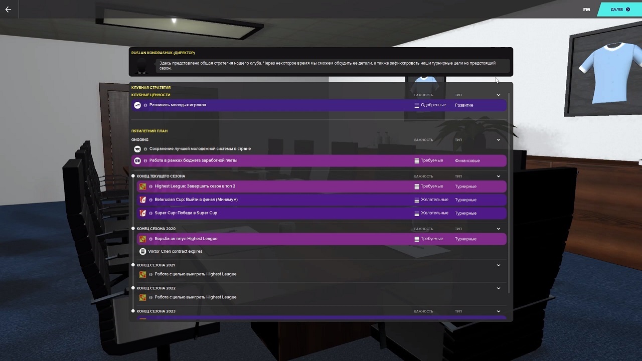 • Игрок может придумать стратегию чтобы как можно скорее достичь цели и возглавить команду, которая состоит из лучших футболистов.