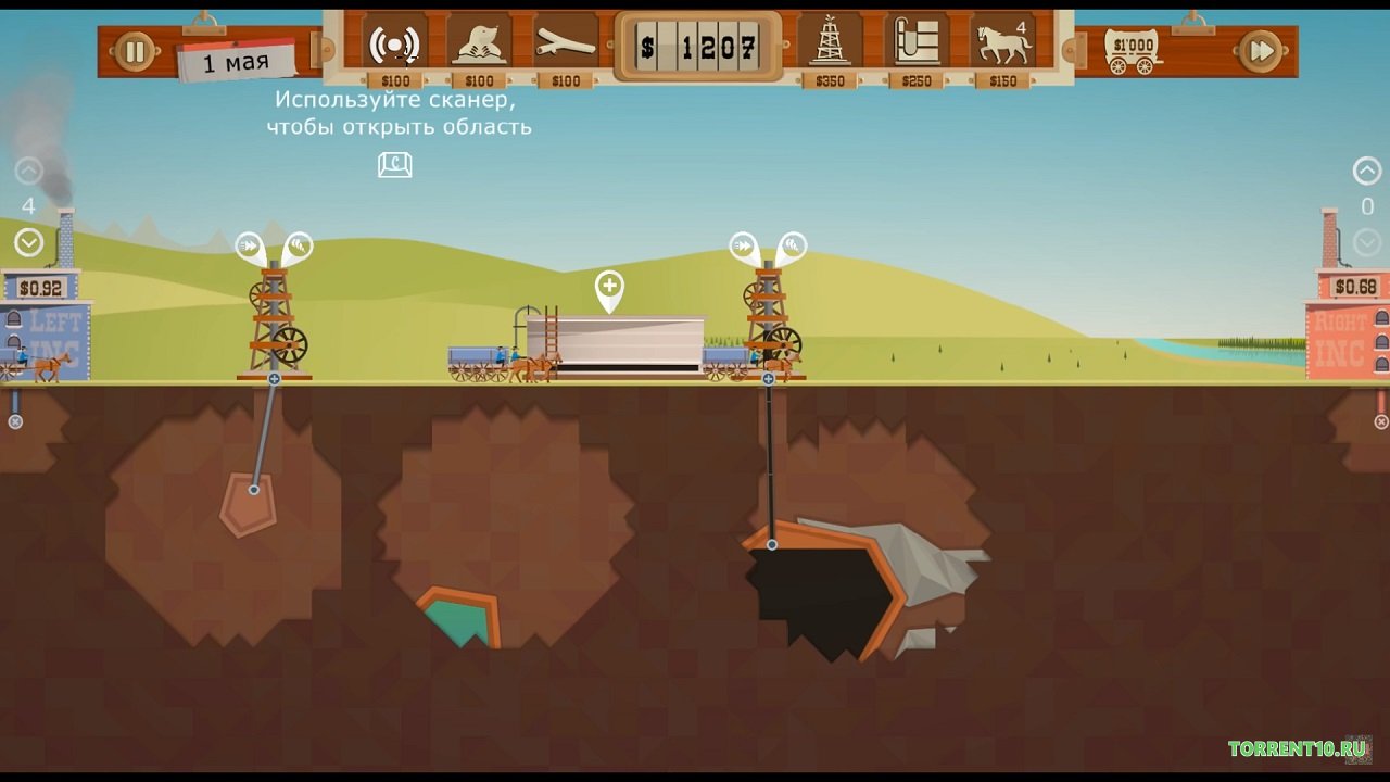 Стать нефтяным монополистом предлагает вам новая аркадная стратегия. События игры навеяны лихорадкой, виной которой стала нефть. Так что приготовьтесь отправиться в девятнадцатое столетие в Северную Америку, чтобы там добывать ценный продукт, который впоследствии можно будет продавать на черном рынке. Чтобы стать успешным магнатом такого бизнеса, в первую очередь вы должны взять в аренду участки земли, чтобы там начать добывать нефть. Естественно вам потребуется рабочая сила. Нанимать вы будете бурильщиков, которым необходимо будет построить жилые дома. В игре Turmoil, скачать торрент на русском которой возможно совершенно бесплатно, если вы посетите наш сайт, вам предстоит развивать свои нефтяные наделы. Но чтобы добывать нефть, вам нужны бурильные установки, вам придется рыть скважины. Найдя правильный участок, можно там установить вышку и добывать нефть. Вы также сможете посещать аукционы, чтобы там покупать акции у своих конкурентов. Как видите, чтобы добиться своего, вам нужно постараться не только продавать нефть, но еще и построить хранилища. Такой ценный продукт всегда востребован, особенно во времена нефтяной лихорадки. Очень увлекательная стратегия, версия которой уже успешно переведена на русский язык!