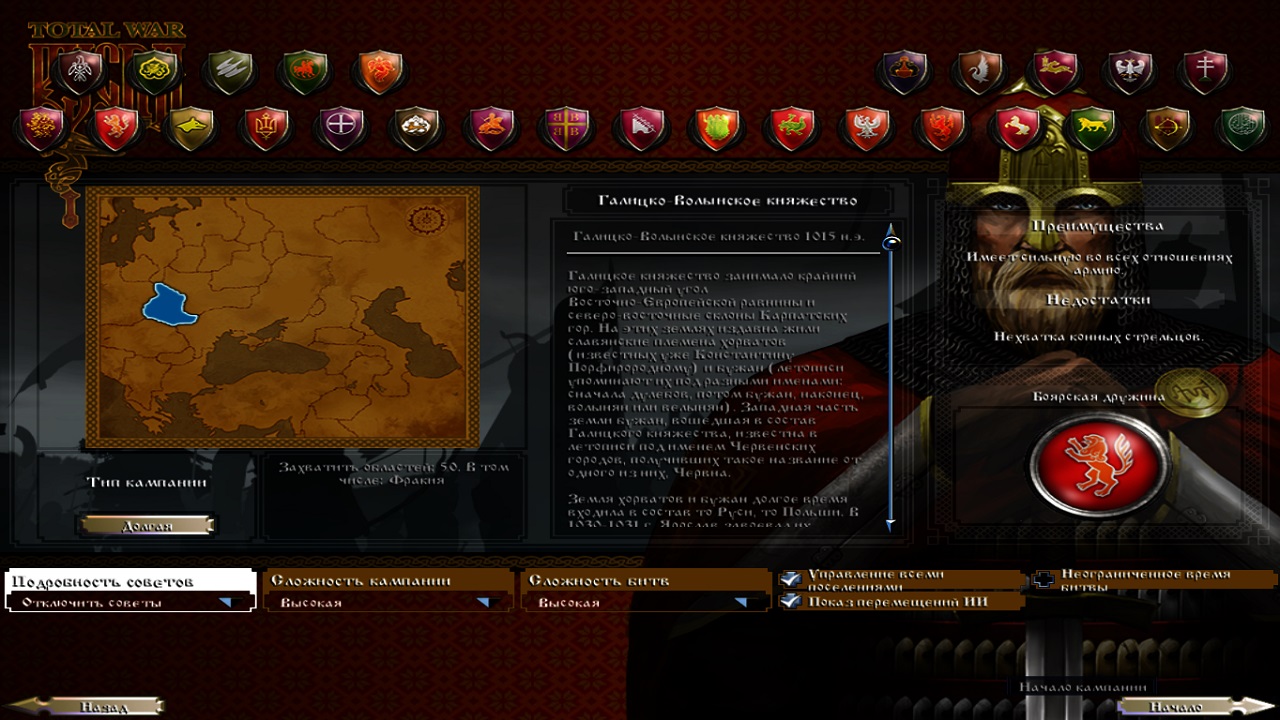 - Противники. Очень много воинов будут нападать на русские средневековые земли- вам нужно будет не только атаковать, но еще и сдерживать оборону. Ваши враги довольно агрессивно будут нападать, так что позаботьтесь о защитных войсках.